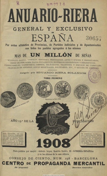 Esta máquina, la Linotipia, no fue introducida en Barcelona hasta 1908 para el Anuario Riera. En 1903 ya llegaron a Barcelona las recentísimas máquinas tipográficas de composición y de fundición mecánica de la marca berlinesa “Typograph”.