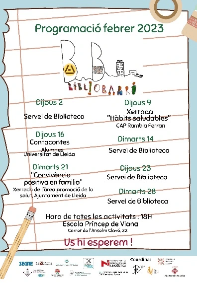 Bibliobarri: Xerrades setmanals a la biblioteca de l’escola Príncep de Viana de Lleida.