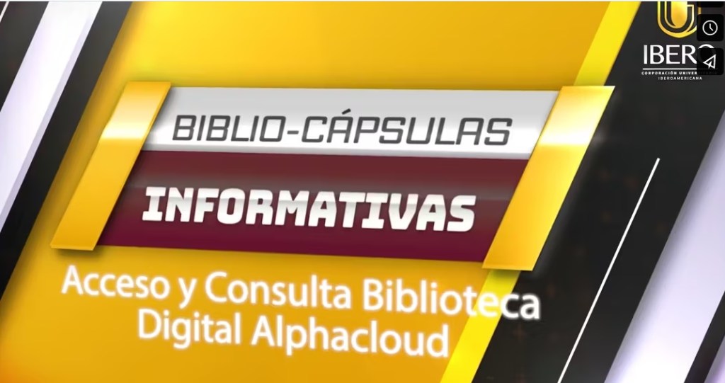 Biblio-cápsulas: vídeo amb un Tutorial_Biblioteca_Acceso y Consulta Biblioteca Digital Alphacloud. De la Biblioteca de la Corporació Universitaria Iberoamericana de Bogotá.