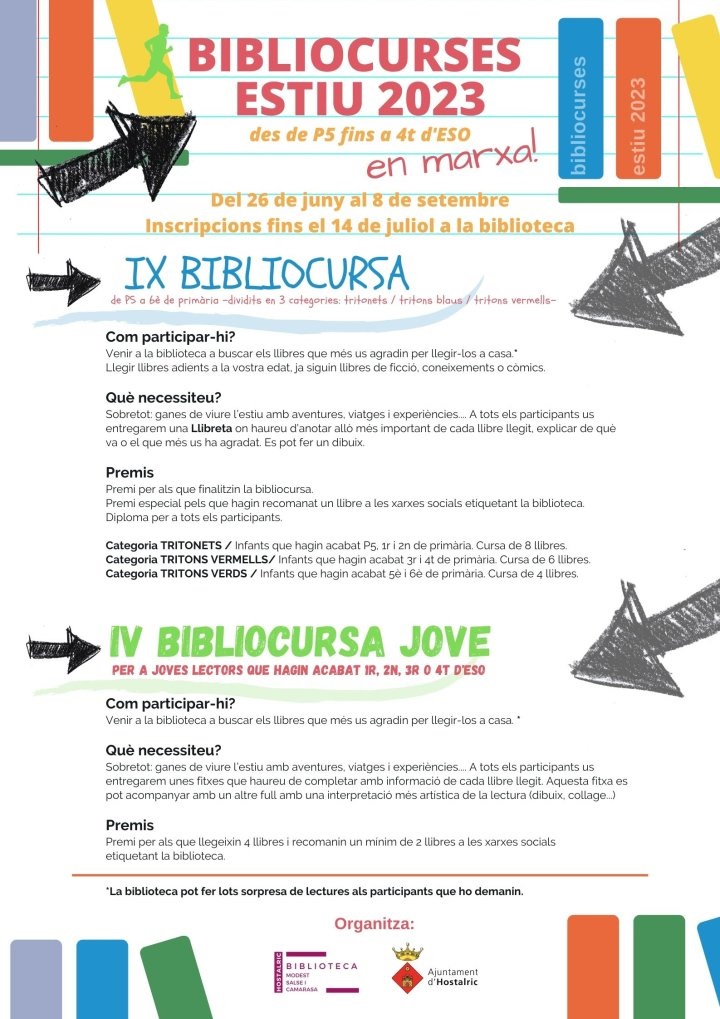 Bibliocurses: Estiu 2023. Organitzades per la Biblioteca Modest Salse i Camarasa d’Hostalric.