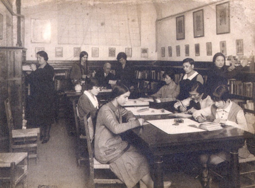Este laboratorio siguió en plena actividad con el nombre de “Círculo de Restauración de Libros”, al unísono de la Escuela de Bibliotecarias que siguió su desarrollo bajo la eficaz Dirección del doctor Luis Segalá y el doctor Jorge Rubió después, secundado por Carles Riba, Pedro Bohigas, y otras ilustres personalidades de las letras y de la erudición bibliogràfica. Jorge Rubió fue quien inició, en 1938, la clase de encuadernación hoy en plena actividad, confiándonos la orientación del primer cursillo. La señorita María de los Ángeles Royo se destacó notablemente en la especialidad teórica y práctica de restaurar libros, profesando dicha clase con notable eficiencia y abnegación. Simultáneamente, la señorita Ascensión Zamorano, quien obtuvo facilidades para cursar estudios en Italia, donde completó su formación, contribuyó a la formación de las discípulas de la clase de restauración de la mencionada Escuela de Bibliotecarias, dependiente de la Excma. Diputación Provincial de Barcelona, y dirigida hoy con el mayor interés y acierto por el director de la Biblioteca Central, don Felipe Mateu Llopis.