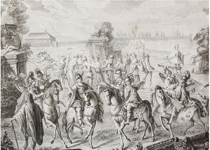 Làmina del llibre Máscara Real de Tramullas (Barcelona, 1764)
