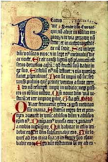 També hi ha qui considera que el primer ex-libris és la miniatura que hi ha en un còdex de l’any 1188, guardat a la Biblioteca Vaticana. Es tracta de la figuració pintada de l’emperador germànic Frederic I Barba-roja, emmarcada per una inscripció posada dins d’un filacteri que fa saber qui va fer el dador de tal còdex. Aquesta miniatura il·luminada no ha d’ésser considerada, però, un ex-libris. No és més que un “recordatori, això és, el que en els cenobis acostumaven de pintar a les cobertes dels llibres que els donaven per “recordar”el generós donant. És veritat que el llibre, abans de la invenció de la impremta, fou obra de cal·lígrafs i miniaturistes, més això no és prou perquè s’arribi a considerar un ex-libris aquesta miniatura-recordatori, trobada en aquest geistlinchen o còdex.