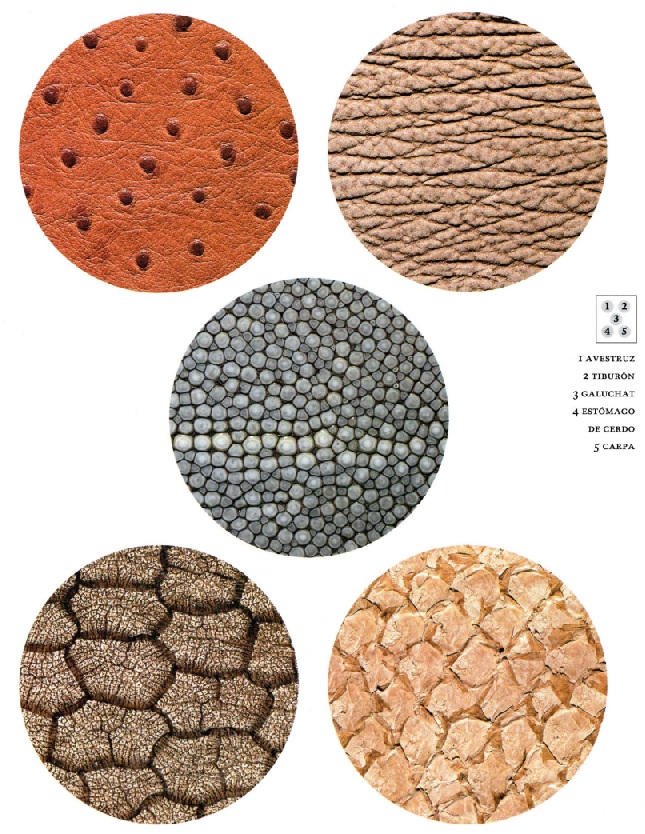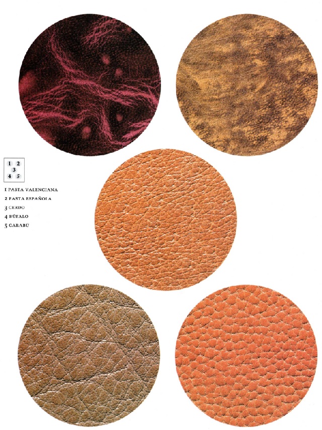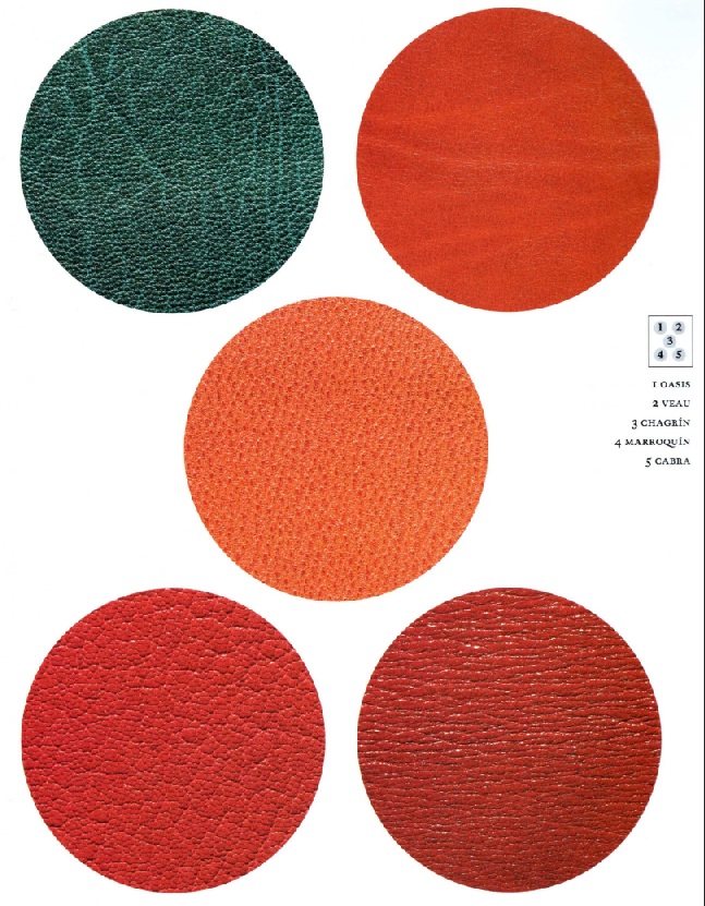–Oasi: Pell de cabrit, semblant al xagrí només que amb el gra aixafat i estries de la flor. De gran qualitat, cara i utilitzada en enquadernacions de luxe.