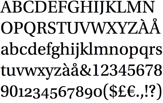 –Lucida Bright: La macrofamília Lucida, dissenyada per Kris Holmes i Charles Bigelow, va ser una de les primeres famílies pensades tant pel seu ús en pantalla com en impressores làser. Està composta per un gran nombre de subfamílies diferents com la Lucida Typewriter, la Lucida Sans, la Lucida Console o la Lucida Bright. Aquesta tipografia amb serifs publicada el 1987 resulta molt llegible gràcies a la gran alçada de la “x” i el contrast entre els pals fins i gruixuts. Té una aparença formal i elegant molt apropiada per a textos llargs que també funciona perfectament a mides d’exhibició com a títols. Això és perquè encara que es tracti d’un disseny modern, les seves formes internes estan basades en el renaixement italià. És el complement perfecte de Lucida Sans i entre les seves innombrables aplicacions podem citar llibres, manuals, revistes, diaris, guies o qualsevol altre disseny que hagi d’anar imprès en baixa resolució com a impressores o pantalles.