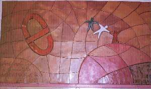Només entrar, a ma esquerra, rere un taulell , 5 grans cartells on es llegeix que hi ha en els pisos 0, 1, 2, 3 i 4, per informar de les exposicions que es poden veure a les sales de cada pis. Per casualitat el cartell del pis 4, dedicat a les Arts Gràfiques, havia caigut i estaven pendents de tornar-lo a posar ( quan he sortit estava al seu lloc).