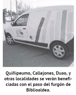 Biblioaldea: projecte que consisteix en una biblioteca muntada en un vehicle que recorre sectors rurals de la comuna de Maule. És un projete executat per el Centro Cultural La Aldea de Talca , a Chile. Més informació a : https://www.pressreader.com/chile/el-centro/20170506/281827168675239