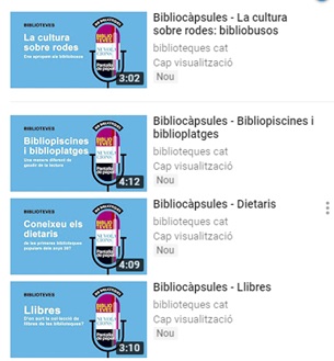 A youtube trobareu unes quantes bibliocàpsules dedicades al món del llibre i les biblioteques: https://www.youtube.com/watch?v=0NbWgtGMNzE