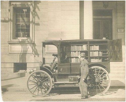 Bibliocoche: nom que, en una ‘tuitada’, li dona Fernando Báez ( @CuentaBaez )a un Bookmobile dels EEUU. Escriu: “ Bibliocoche en Washington County, 1912”. (05/09/2017)