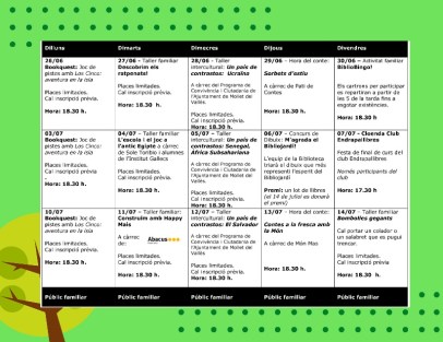 Bibliotequesalafresca: hashtag #bibliotequesalafresca. Com cada any les biblioteques públiques enceten una nova temporada de lectures refrescants i habiliten espais de lectura a l’aire lliure: piscines, platges, parcs, places… Entre els objectius d’aquest servei d’estiu en destaca la creació de nous lectors i l’associació de la lectura amb el temps de lleure. https://web.gencat.cat/ca/actualitat/detall/Llegir-a-la-fresca