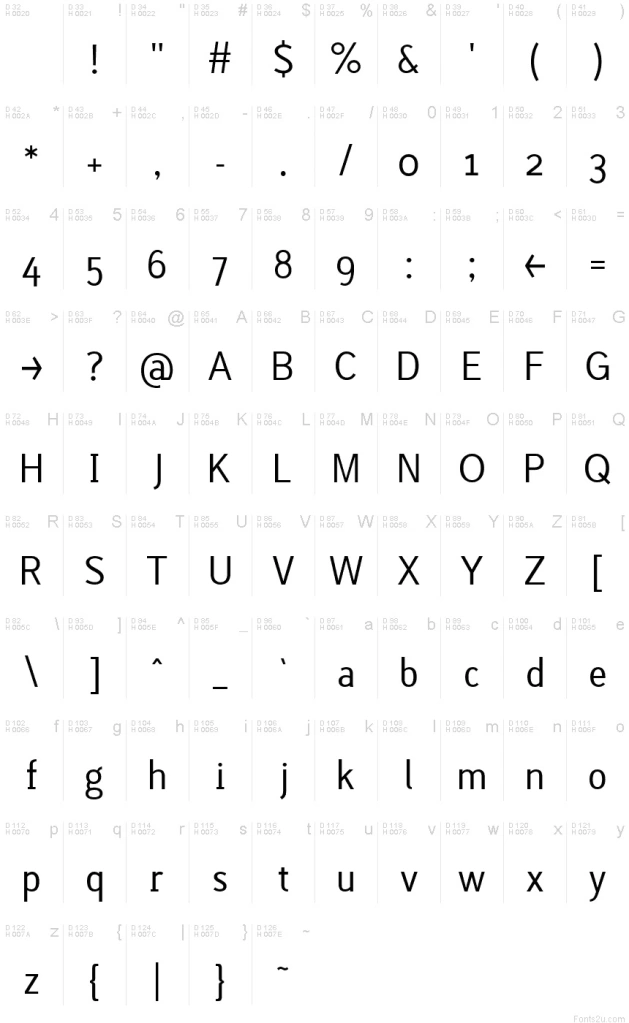 –Lucida Console: Tipografia dissenyada per Charles Bigelow i Kris Holmes el 1993 com a ampliació a la família Lucida que van crear el 1985. Aquesta última va ser una de les primeres famílies a tenir una subfamília amb serifs i una altra sense, i es va anar ampliant amb altres varietats enfocades a multitud d’aplicacions, sempre tenint en compte la llegibilitat, especialment en baixes resolucions com a pantalles d’ordinador o màquines de fax. La família Lucida Console va ser creada per utilitzar en interfícies i programació. Són caràcters monoespaiats amb una gran altura de la “x”. Entre la seva àmplia gamma d’aplicacions s’hi inclouen formularis, taules, fax, cartells, etc. En mides grans (a partir de 14 punts), és recomanable restar el ‘tracking’ per compensar el monoespaiat i donar-li un aspecte més ajustat, mentre que si fem servir tota majúscula es pot incrementar una mica l’espaiat, ja que per defecte té el mateix que les minúscules. Es pot combinar sense problemes amb altres membres de la família Lucida com la Lucida Fax o Lucida Bright en mides petites i baixa resolució.