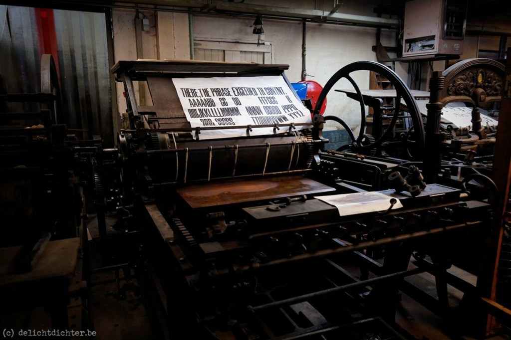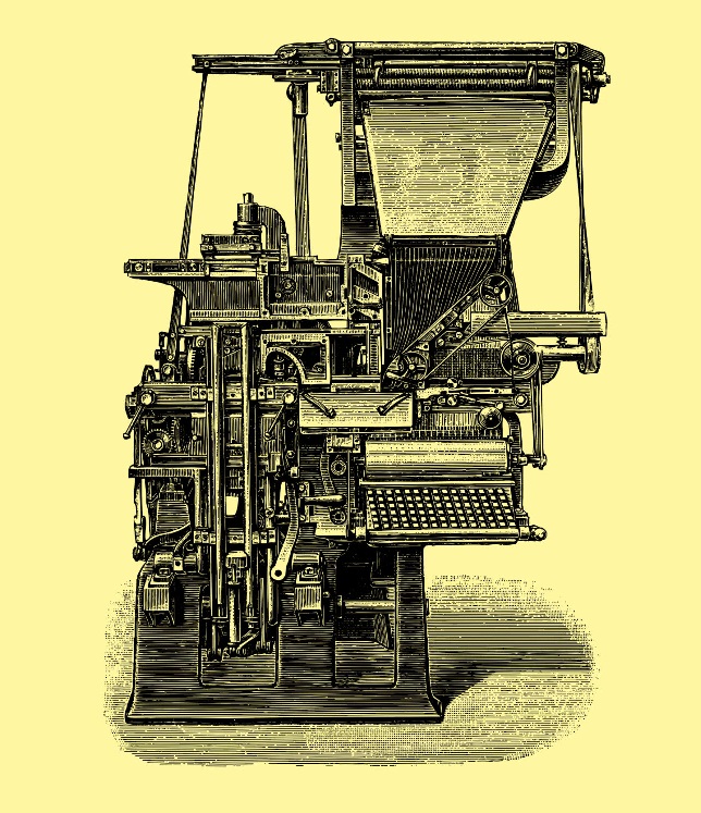 –Ludlow: Màquina de fondre titulars formant línies amb matrius compostes a mà. Aquesta màquina supleix amb gran avantatge la variada abundància de caràcters per a titulars que lògicament s’havien de fer a mà.