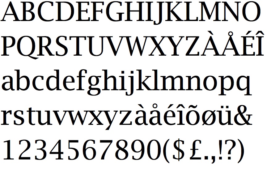 –Lucida Bright: La macrofamília Lucida, dissenyada per Kris Holmes i Charles Bigelow, va ser una de les primeres famílies pensades tant pel seu ús en pantalla com en impressores làser. Està composta per un gran nombre de subfamílies diferents com la Lucida Typewriter, la Lucida Sans, la Lucida Console o la Lucida Bright. Aquesta tipografia amb serifs publicada el 1987 resulta molt llegible gràcies a la gran alçada de la “x” i el contrast entre els pals fins i gruixuts. Té una aparença formal i elegant molt apropiada per a textos llargs que també funciona perfectament a mides d’exhibició com a títols. Això és perquè encara que es tracti d’un disseny modern, les seves formes internes estan basades en el renaixement italià. És el complement perfecte de Lucida Sans i entre les seves innombrables aplicacions podem citar llibres, manuals, revistes, diaris, guies o qualsevol altre disseny que hagi d’anar imprès en baixa resolució com a impressores o pantalles.