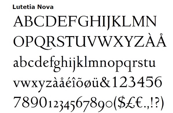–Lutetia Nova: Nova edició de l’antiga Lutetia de Jan van Krimpen, llançada a finals de la dècada del 1920, que reviu amb un disseny completament nou de Ralph M. Unger l’any 2014.