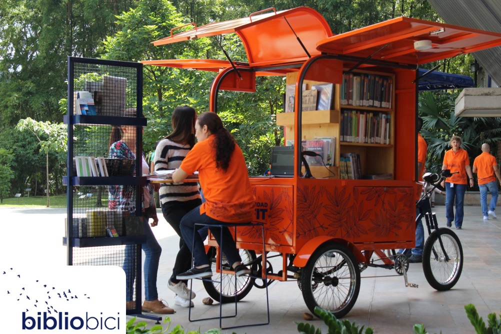 Bibliobici : aquesta iniciativa visitarà diversos punts del campus per a facilitar l’accés a les novetats i múltiples serveis del Centro Cultural Biblioteca Luis Echavarría Villegas, com préstecs, renovacions i activitats culturals.