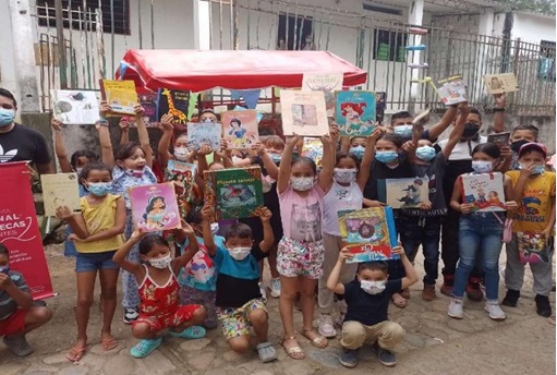 Bibliocarrito: l’objectiu d’aquesta iniciativa és portar llibres, pintures, manualitats i incentivar l’hàbit de la lectura a les comunitats apartades i vulnerables. A Los Patios ( Colombia).