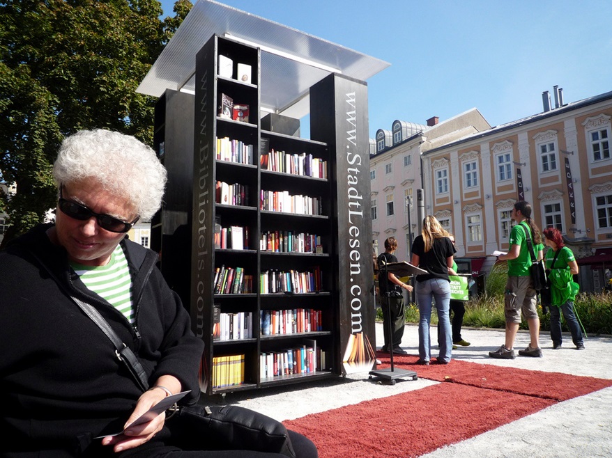 Biblio-cabina: cabines de telèfons són reciclades en cabines per recollir i intercanviar llibres. En diferents ciutats ja fan servir antigues cabines per a diferents usos, l’ intercanvi de llibres és un dels més habituals. A Machwitz ( provincia de Buenos Aires) podeu veure les instruccions i un video.