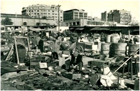 Entre els venedors d’ambdós mercats no regnava gaire simpatia, ja que quan l’Ajuntament els va refondre van protestar sorollosament, puix que cap d’ells volia barrejar-se i tots tenien com a rebaix la convivència amb l’altre. Fira i Encants van subsistir confosos pels voltants de la Llotja fins que, no sabem per quina raó, es decidí el trasllat del mercat de coses velles a l’esplanada del davant del portal de Sant Antoni, on formava com un turonet que va haver d’ésser aplanat quan es va construir el mercat actual. Les obres van durar molt de temps o foren començades després d’haver-hi instal·lat una part dels