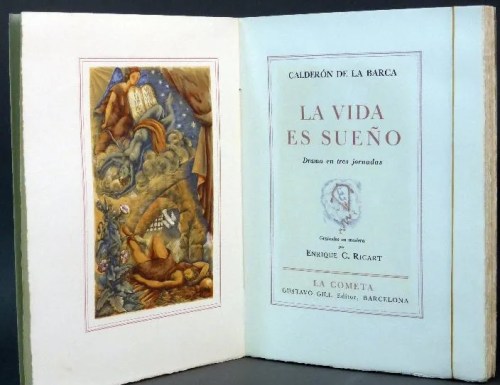 “ –Y a ese Gustavo Gili, editor, a quien no tengo el gusto de conocer ni en sueños; le ha cogido muy en serio; porque, además de esta Semana Santa, anuncia, bajo el signo de “La Cometa”, otras varias obras de bibliofilia lujosa – El sombrero de tres picos, con aguafuertes de Javier Nogués; El alcalde de Zalamea, con litografías de José de Togores; La vida es sueño, con hojas de Enrique Ricart; las Elegías, de Eduardo Marquina, con puntas secas debidas a una dama artista, Laura Albéniz de Moya, hija del gran compositor-; una serie de libros, en fin, en los cuales el editor va a perder todo el dinero que le cuesten.